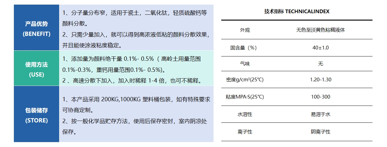 HQ-S933M 分散劑,是聚胺酸系列涂料分散劑,極易溶于水,對無機頻料 有很好的分散劑和降粘效果。使涂布漿料有極具流動性。