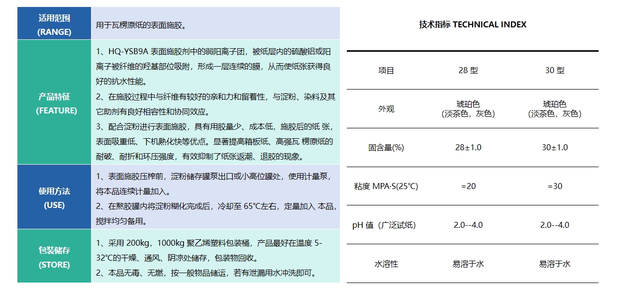 HQ-G6887 表面施膠劑,是苯乙烯-丙烯酸醋類的共聚合成的一種弱陽(yáng)離子表面施膠劑,能與淀粉有機(jī)溶合,賦予淀粉涂層良好的交聯(lián)強(qiáng)度和疏水性能。無熟化期,可100%留著于紙上,集中發(fā)揮其施膠效果,獲得穩(wěn)定的抗水性能,且高強(qiáng)瓦楞紙不回潮,環(huán)壓強(qiáng)度穩(wěn)定不變。